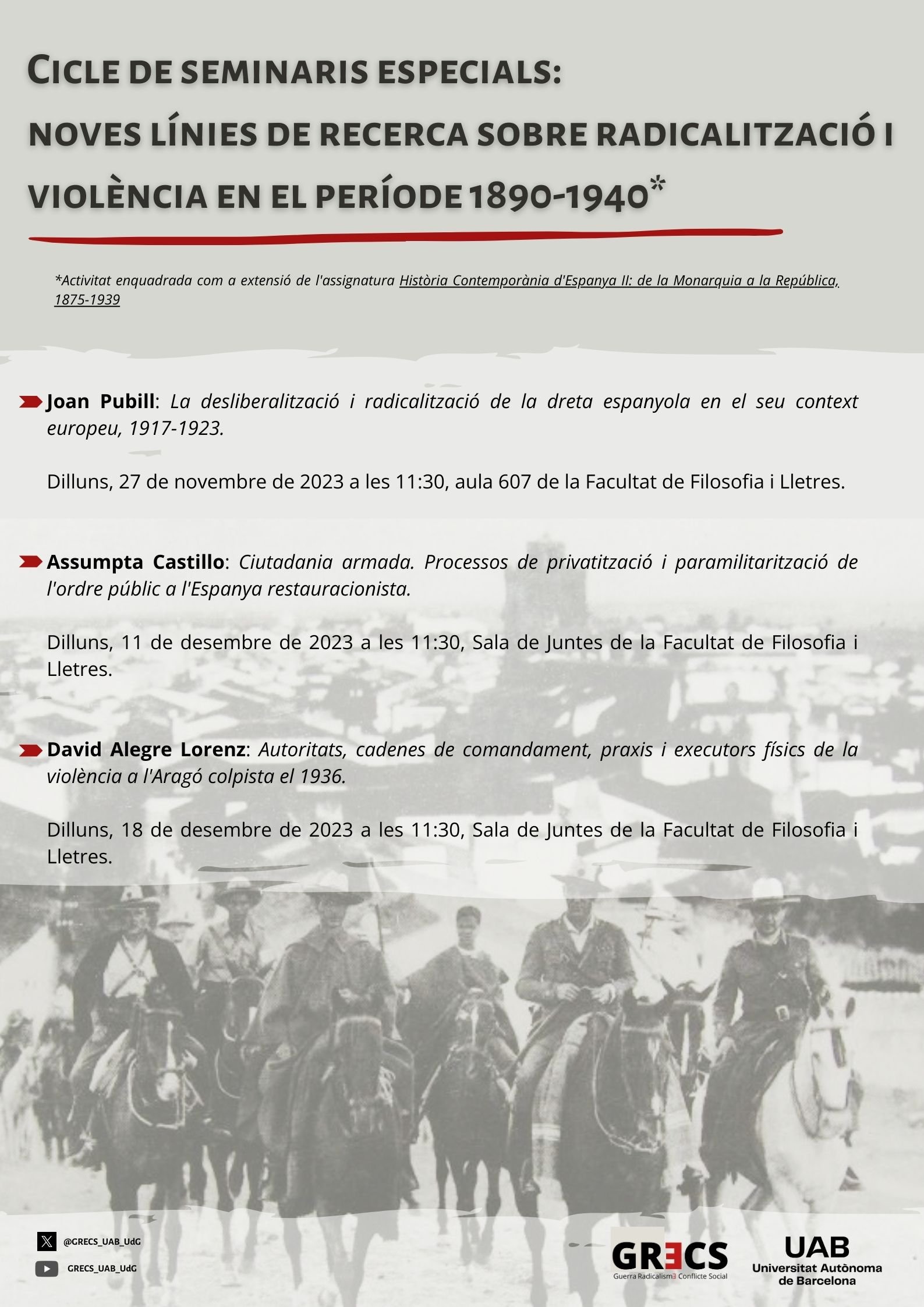 Ciclo de seminarios especiales en la UAB: "Noves línies de recerca sobre radicalització i violència en el període 1890-1940"